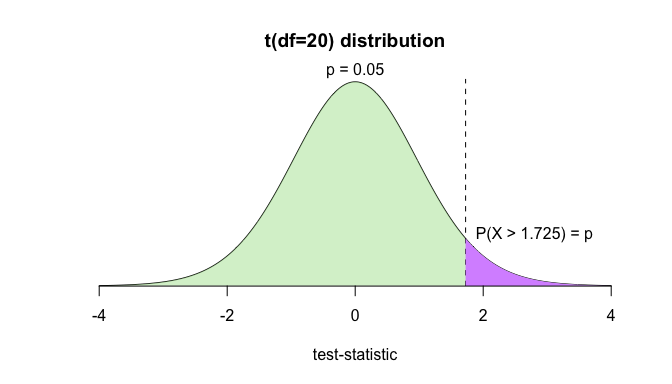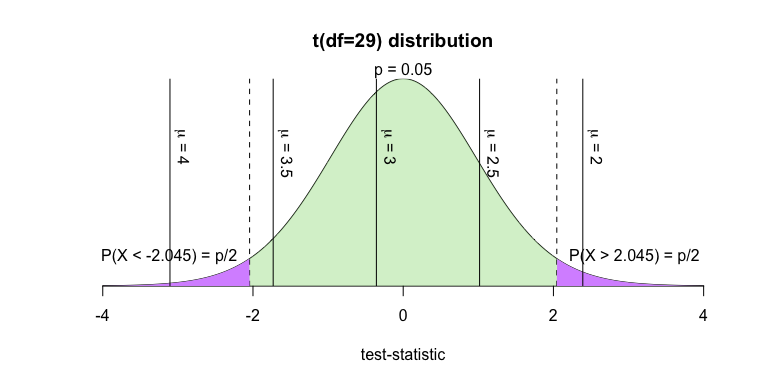title(main=paste0('t(df=', df, ') distribution'), xlab='test-statistic')